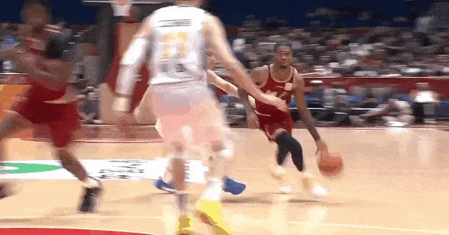CBA常规赛,浙江对阵北京的比赛正在进行中。第三节比赛中,琼斯下顺起飞接球,在周琦头上完成双手空接暴扣。CBA常规赛,浙江对阵北京的比赛正在进行中。第三节比赛中,琼斯下顺起飞接球,在周琦头上完成双手空接暴扣。